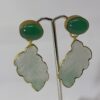 ARETES EXCLUSIVOS HECHOS A MANO EN PIEDRAS FORMAS HOJA, CALCEDONIA VERDE BANADOS EN ORO 18K. Elegantes.