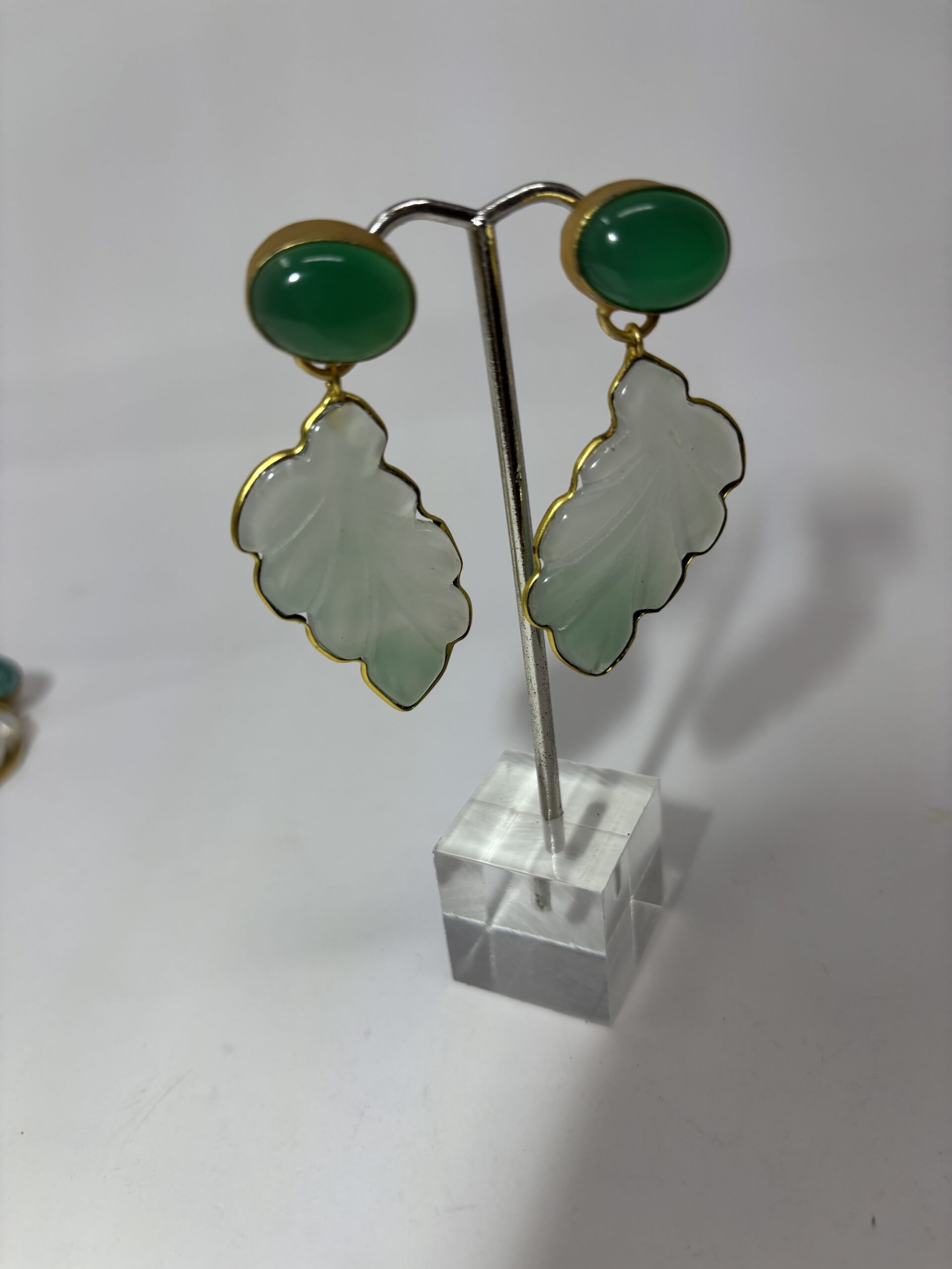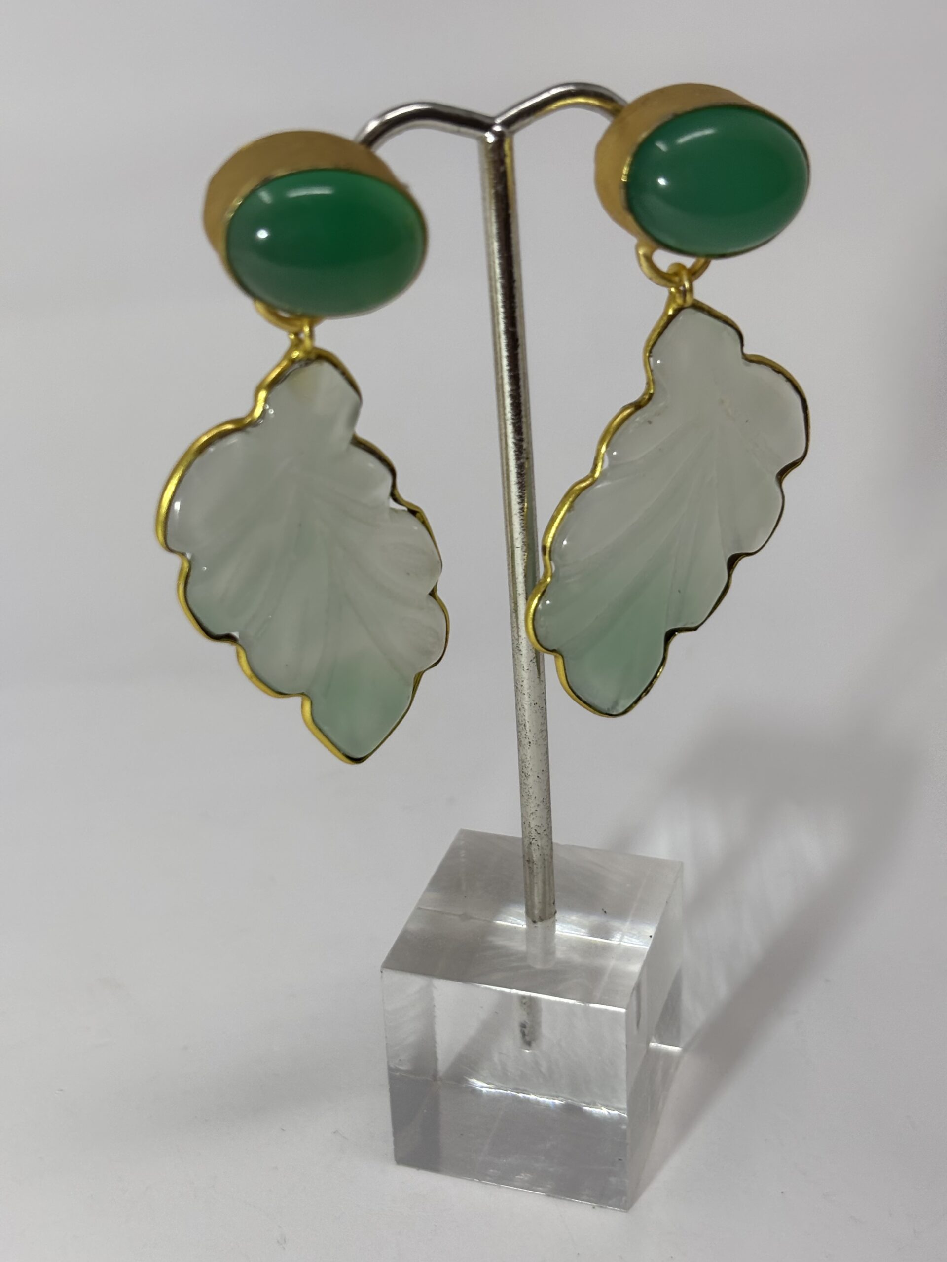 Aretes en Gold Plated 18k, Con forma de hoja Calcedonia